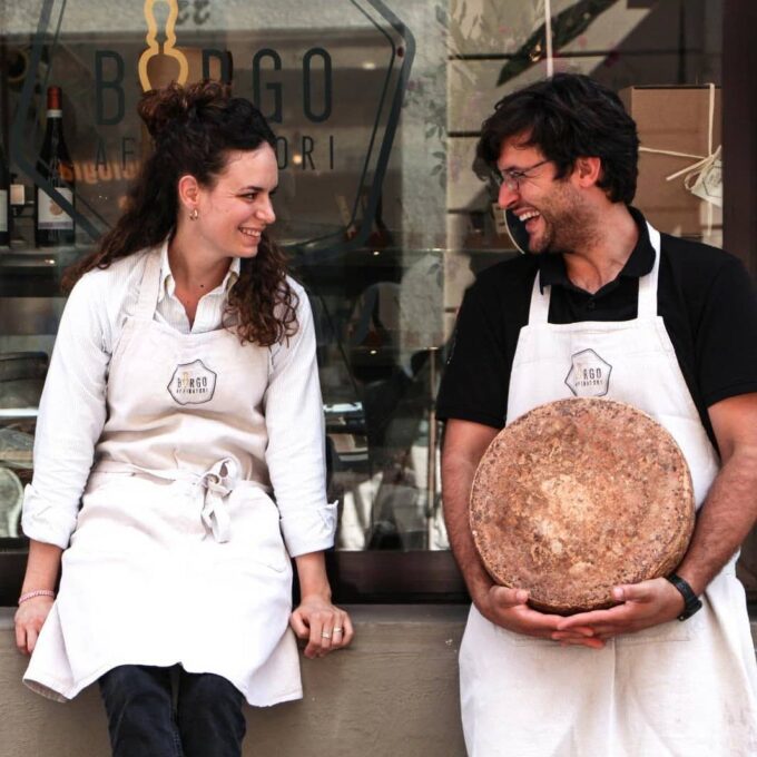 Borgo Affinatori è una realtà nata nel 2018 con Barbara e Lorenzo nel cuore del Monferrato. La stagionatura e l’affinamento dei formaggi è la loro professione e passione. Il laboratorio e le cantine di stagionatura si trovano nella campagna astigiana. Ad Asti, in centro storico, a due passi da Piazza San Secondo, potete invece trovare il loro shop con tutti i formaggi da loro lavorati, formaggi italiani e altri prodotti complementari locali (vino, birra, salumi, ecc.). Nello shop si possono acquistare box d’asporto con formaggi e affettati da consumare comodamente ovunque.