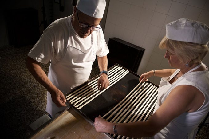 La nostra storia inizia nel 1979 quando rilevammo il forno storico situato di fronte al castello medievale di Barolo. Al tempo la produzione di grissini era ancora modesta, ma con il passare degli anni sono diventati il nostro prodotto più apprezzato. Alla fine degli anni ’90 la panetteria cambia sede, spostandosi nella piazza centrale del paese; terminata la produzione del pane, ci dedichiamo totalmente al nostro prodotto più conosciuto e rinomato: i grissini stirati a mano. Abbiamo aggiunto alla nostra piccola produzione le paste di meliga e le torte di nocciola, dolci tradizionali della provincia di Cuneo, e in seguito le foglie, snack fragrante e saporito. Con il passare degli anni abbiamo mantenuto intatto il rituale, la bontà degli ingredienti, ma soprattutto l’amore per un lavoro che nasce dalle mani.