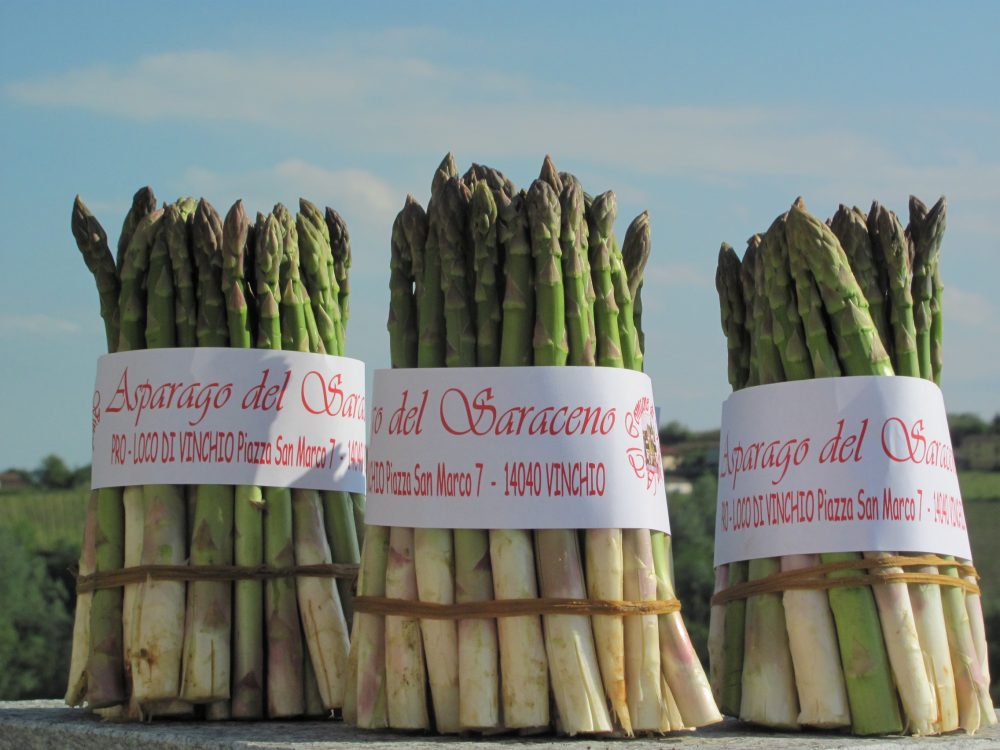 Degli asparagi sappiamo molto. Prima di tutto che sono buoni. I nutrizionisti riconoscono loro proprietà antiossidanti e diuretiche, una buona dose di vitamine, sali minerali e sostanze energetiche. I botanici ne esaltano la robustezza e la tenacia: una liliacea che cresce talvolta anche spontanea e su terreni sabbiosi. Gli chef non fanno mistero della loro passione per questo ortaggio e sono molti i piatti che lo vedono protagonista. Ma se parliamo dell’asparago saraceno di Vinchio ci sono altre cose da sapere. A Vinchio l’asparago s’intreccia con storie di uomini e soprattutto di donne che di queste colline fecero la differenza. Ci sono le storie dei Saraceni e di quell’Aleramo che qui li sconfisse. Ci sono le storie di madri che, durante e subito dopo la Guerra, provarono a coltivare qualcosa che crescesse bene tra le vigne e che potesse aiutare le magre economie contadine. E poi c’è la storia di Rosetta Lajolo, l’adorata moglie dello scrittore e politico Davide Lajolo, che negli anni ’70 intuì la necessità di dare dignità all’asparago di Vinchio. Gli diede un nome, lo depositò, inventò una sagra coinvolgendo tutte le “madamin” del paese e inanellò una serie di successi e riconoscimenti. Molto apprezzato per le sue proprietà organolettiche l’asparago di Vinchio è caratterizzato da un colore verde scuro, una polpa carnosa e un gusto intenso. Viene servito cotto a vapore senza alcun accompagnamento, solo impreziosito da un filo d’olio d’oliva per esaltarne il gusto.