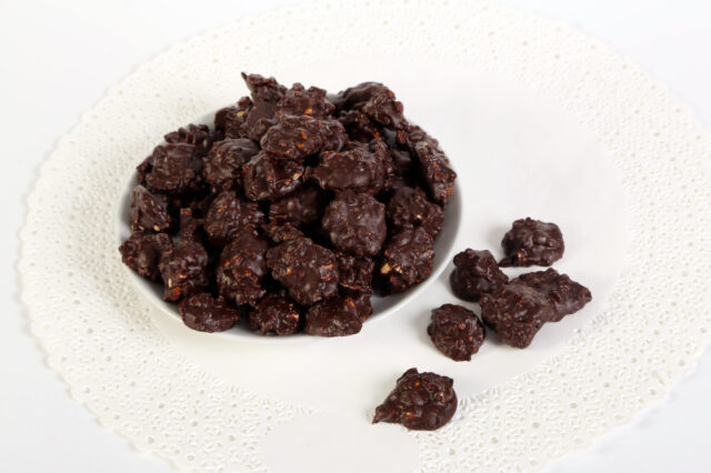 Ci sono cose che nascono per caso e che poi diventano dei veri e propri simboli di un territorio. È il caso dei Baci di Cherasco, un cioccolatino creato per non sprecare ciò che avanzava dalla lavorazione del torrone. Era il 1881 e il giovane pasticciere Marco Barbero, appreso il mestiere nelle botteghe di Torino, tornò nella sua Cherasco per avviare la sua confetteria. Tante le specialità che propose ai suoi clienti, incluso quel torrone realizzato con le nocciole di Langa. C’era solo un problema, le nocciole spesso avanzavano e c’era il rischio di dover gettar via della preziosa materia prima. Decise così di fondere questi frammenti di “tonda e gentile” con del cioccolato fondente e del burro di cacao, suddividendo il tutto in piccole porzioni. Non bello a vedersi per la sua irregolarità, iniziò comunque ad appassionare i clienti della pasticceria. Fu nel 1939, grazie alla costante richiesta di questo semplice, ma gustoso dolcetto, che venne battezzato Bacio di Cherasco. Da allora la loro produzione non ha mai varcato la soglia delle botteghe artigiane: le nocciole Piemonte devono essere spezzate con il mattarello, per evitare che venga liberato l’olio in esse contenuto, e poi amalgamate con la miscela di cioccolato fondente con il 65% di massa di cacao ed infine porzionate in piccoli e irregolari “mucchietti” di bontà.