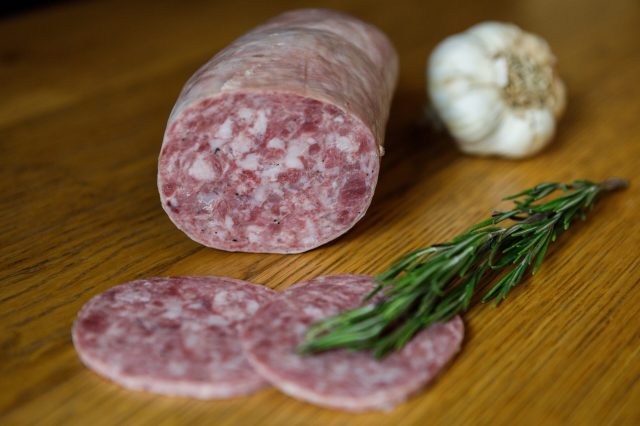 C’è chi lo preferisce come antipasto e chi invece lo degusta farcendo un panino appena sfornato, magari seguito da un buon bicchiere di vino. Una prelibatezza che arriva da lontano, considerato a torto il cugino povero del salame tradizionale: una ricetta tramandata nelle cascine e che veniva un tempo preparato con le parti meno nobili del suino. È il Salame Cotto, immancabile sulle tavole piemontesi e che oggi viene confezionato utilizzando le parti magre del maiale ed in particolare la spalla e altre rifilature. Una macinazione non troppo fine e l’inserimento di altre parti grasse (come lardo e pancetta) per poi essere salato e aromatizzato con spezie e vino. Poco conosciuto nelle altre regioni è una vera e propria bontà riconoscibile a colpo d’occhio per quel diametro piuttosto importante (tra i 10 e i 20 centimetri) e soprattutto per il suo colore rosso chiaro, tendente al rosa. Il gusto è molto particolare, delicato, profumato e sono molte le ricette che vengono impreziosite con questo insaccato. Riconosciuto come P.A.T. viene prodotto secondo un rigido disciplinare stilato dal Consorzio Salumeria Tipica di Cuneo che prevede l’uso di sole carni fresche di suini macellati ad un’età superiore ai 9 mesi. Le carni magre, inoltre, devono rappresentare l’80% del totale e quelle grasse solo il 20%. Analogamente anche in Monferrato, con il progetto “Salame Cotto Monferrato” si sta lavorando per ottenerne il marchio di qualità IGP.